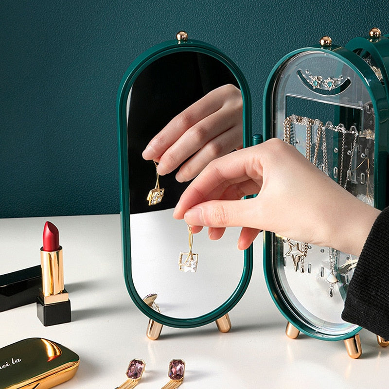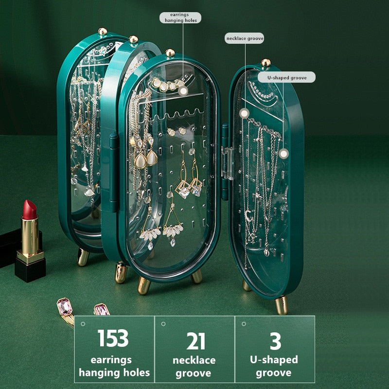 Experience the convenience of organized jewelry storage with a beautiful design. Say goodbye to cluttered countertops and hello to a sleek and tidy jewelry display. Enjoy quick. and effortless access to all your jewelry with a safe way to store all of your expensive accessories at home or during travels.